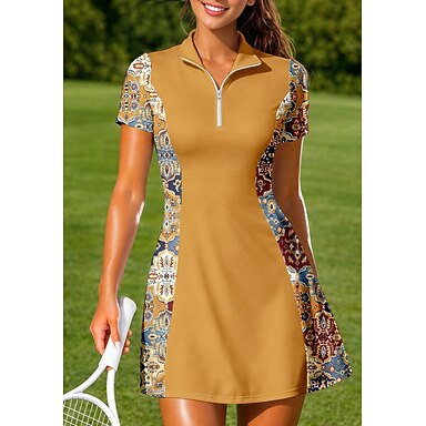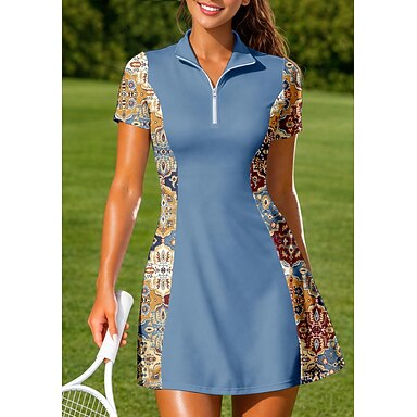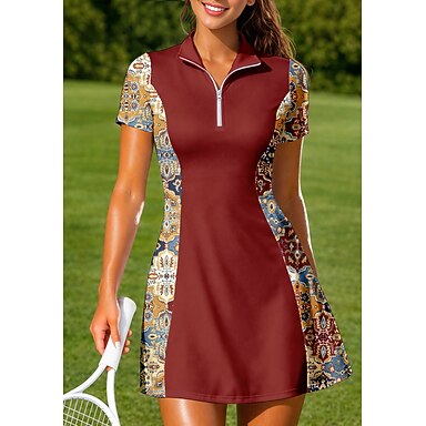 Mujer Geométrico Flores Vestido deportivo Vestido polo de tenis Manga Corta Cremallera de un cuarto Elástico Reductor del Sudor Transpirable Voleibol Tenis Golf Cuello Vuelto Vestidos Vino Azul