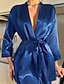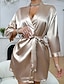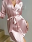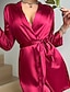 Mujer Bata de noche Casual Suave Satén Color puro Acordonado Diario Hogar Cama Manga Larga Escote en Pico Negro Blanco Champaña Rosa Rojo Verano Holgado