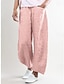 Pantalones de lino y algodón para mujer pantalones bombachos pantalones holgados vacaciones básicos de largo completo cintura media lisos con bolsillo elástico comodidad de pierna ancha al aire libre