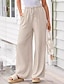 Pantalones de lino y algodón para mujer pantalones de verano pantalones holgados pantalones de playa vacaciones básicos casuales de largo completo cintura alta liso con cordón pierna ancha comodidad