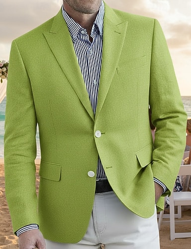 Saco Blazer de Lino para Hombre Cierre de Cuello de Saco Moda Liviano Oficina Color Sólido Saco de Lino Celeste Salvia Ajuste a Medida Abotonadura Simple Dos Botones