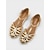 Sandalias planas metalizadas doradas para mujer con tira trenzada floral y detalles de piedras preciosas: calzado informal de verano para playa, piscina y vacaciones.