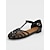 Sandalias de gladiador con flecos negros para mujer: sandalias planas bohemias con tiras y detalles de estrellas doradas, zapatos de verano cómodos para los desfiles del 250.º Día de la Independencia