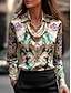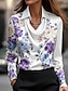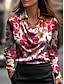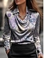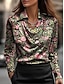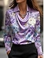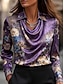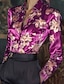 Corte A Hasta el Suelo Vestidos de noche Vestimenta formal Elegante Floral Sedoso Manga Larga Escote en Pico Boda Formal Satén con Estampado flor