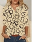 Camisa de mujer de lino como transpirable ligera gráfica geométrica vintage casual diaria de manga larga cuello de camisa tops regulares impresión de vacaciones verde salvia amarilla marrón caqui