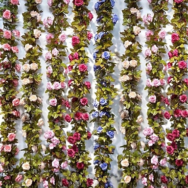 220 cm / 87 "tela de seda de ratán rosa de imitación flor falsa decoración de boda de ratán ratán 17 cabezas de flores, flores falsas para boda arco jardín pared fiesta en casa hotel oficina arreglo