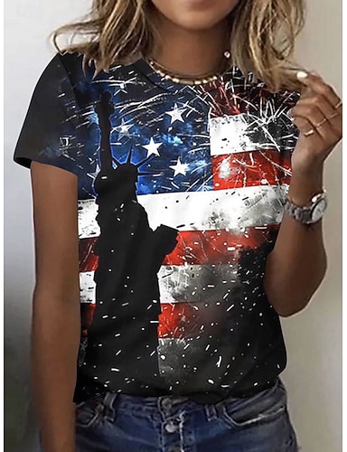 día de la independencia americana Mujer Camiseta Estampado Graphic Bandera Elegante Clásico Casual Manga Corta Cuello Barco Escote Redondo Tops regulares Diario Azul Piscina Negro Rojo Verano