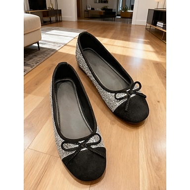 Bailarinas negras de ante para mujer con detalles brillantes – elegante diseño con lazo, perfectas para eventos nocturnos, fiestas y ocasiones especiales.