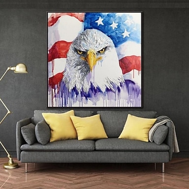 Pintura al óleo hecha a mano de América de 250 años, lienzo, arte de pared, decoración, águila calva para decoración del hogar, pintura enrollada sin marco y sin estirar.