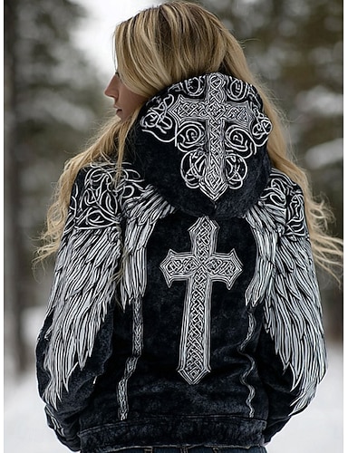 Mujer Sudaderas con cremallera Graphic Geométrico Tribal Punk Activo Vintage Manga Larga Con Capucha Tops regulares Casual Hogar Uso Diario Azul Piscina Morado Marrón Verde Trébol Otoño Invierno
