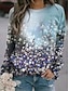 Mujer Sudadera Estampado Floral Graphic Casual Manga Larga Cuello Barco Tops regulares Casual Calle Festivos Azul Piscina Rosa Gris Oscuro Azul cielo Morado Primavera Invierno