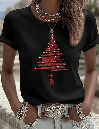 Sudadera de cuello redondo con estampado para mujeres en Navidad casual de manga larga tops regulares ropa de calle uso diario casual negro blanco verde claro rojo otoño invierno