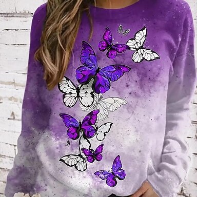 Mujer Sudaderas Estampado Graphic Mariposa Cálido Clásico Casual Manga Larga Cuello Barco Escote Redondo Tops regulares Casual Hogar Calle Blanco Primavera Otoño Invierno