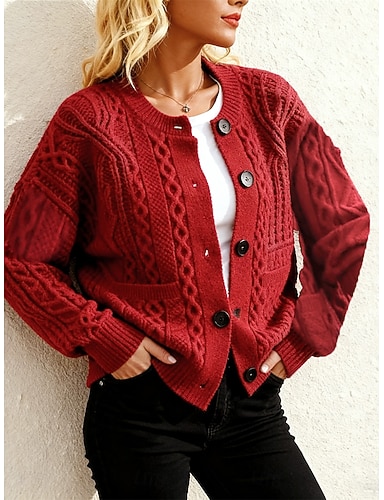 Suéter de cárdigan para mujer de punto acanalado con botones en la parte delantera cuello redondo manga larga ligero elegante vintage diario floral gráfico estampado geométrico tejido al aire libre