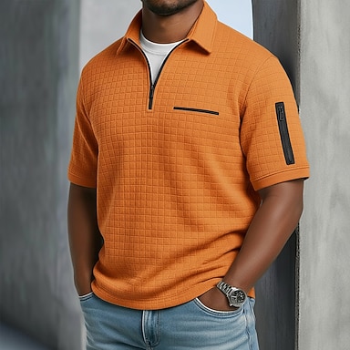 Hombre Camisetas polo con diseño de gofre Polo con media cremallera Casual Exterior Cremallera de un cuarto Manga Corta Moda Moderno Color sólido De Punto Primavera & Otoño Todas las Temporadas