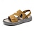 Sandalias de hombre color mostaza con tira trasera, puntera abierta, estilo casual de verano, ajustables, cómodas, ideales para vacaciones en la playa, viajes, uso en resorts y para el día a día.