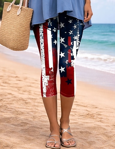 Leggings para mujer, diseño del Día de la Independencia de Estados Unidos, para vacaciones, moda urbana, pantalones capri de cintura alta, con diseño de bandera, cómodos, suaves y elásticos, para uso diario, para exteriores, vacaciones, azules, rojos, par