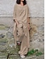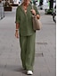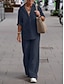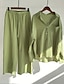 Conjuntos de algodón para mujer, conjuntos de pantalones, 100 % algodón, manga larga, cuello camisero, color liso, elegante, moda urbana, informal, diario, exterior, verde militar, azul marino oscuro,