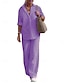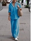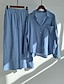 Conjuntos de algodón para mujer, conjuntos de pantalones, 100% algodón, manga larga, cuello camisero, color liso, elegante, moda urbana, informal, diario, exterior, azul, blanco, rosa, verano, corte
