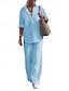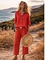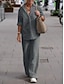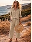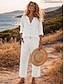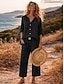 Conjuntos de pantalones de algodón y lino para mujer top bolero camisa de manga larga cuello color sólido moda urbana casual uso diario exterior azul negro blanco verano corte suelto