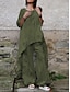 Pantalones de mujer 100% algodón, estilo urbano, color liso, sin mangas, cuello en U, botones, bolsillo, para salir a la calle, corte regular, color blanco, para verano.