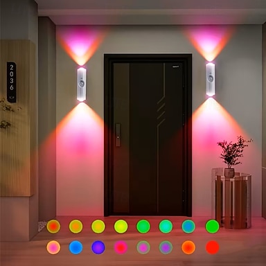 1/4 unidades de luz nocturna con sensor de doble cabezal tipo ojo de gato, recargable por USB, RGB, aplique de pared, 3/7 modos de color, atenuación continua, ideal para dormitorios, escaleras,