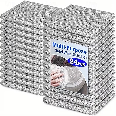 24 paños de cocina de alambre de acero multiusos que no rayan: paños reutilizables de secado rápido sin olor para platos, paños de limpieza de cocina para utensilios de cocina, fregaderos y estufas.