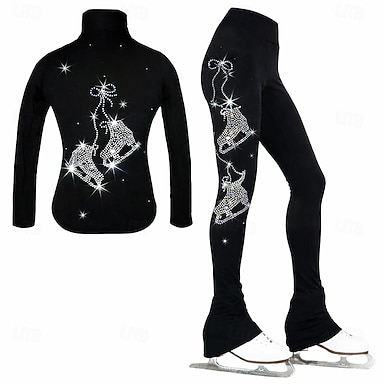 Chaqueta con pantalones para patinaje sobre hielo Mujer Chica Patinaje Sobre Hielo Accesorios Negro Elástico Entrenamiento Competición Ropa de Patinaje Mantiene abrigado Cristal / Strass Manga Larga