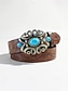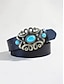 Cinturón bohemio de piel sintética turquesa para mujer, cinturón estilo western vintage negro y marrón con correa grabada y hebilla ornamentada para uso casual, viajes, vacaciones y estilo resort.