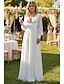 Corte A Hasta el Suelo Vestido blanco Vestido blanco pequeño Elegante Espalda Abierta Manga Larga Escote en Pico Boda Gasa V Atrás con Fruncido