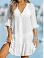 Vestidos blancos de compromiso pequeña Graduación Vestidos de Boda Corto/Columnar Escote en V Manga corta Longitud de té Chiffon Vestidos de novia con Arrugado Color sólido