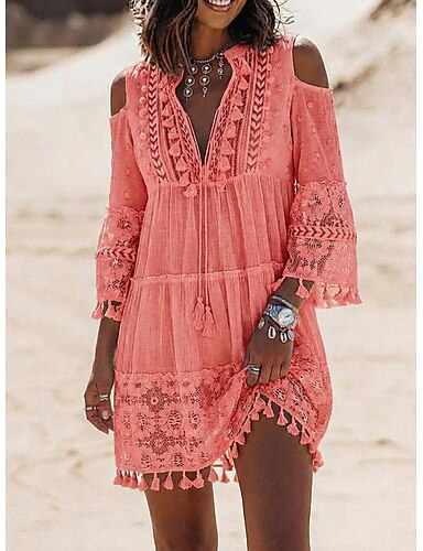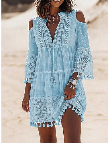 Vestido pequeño blanco para la ducha nupcial en la playa Vestidos para duchas nupciales Vestidos de boda Corte en A Cuello en V Manga larga Asimétrico Chifón Vestidos nupciales con color sólido