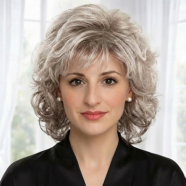 Pelucas cortas de corte pixie para mujeres mayores, peluca de cabello en capas gris plateado con flequillo, pelucas sintéticas onduladas y rizadas para mujeres mayores, ideal para fiestas diarias de