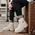 Botas altas de piel sintética blanca para hombre: costuras artesanales, diseño con cordones y correa de velcro, suela resistente antideslizante para uso informal y al aire libre