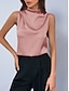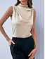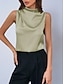 Mujer Camisa de raso Blusa Camisa sin mangas Plano Elegante Básico Clásico Sin Mangas Cuello Alto Tops regulares Diario Festivos Noche Verde Claro Rosa Albaricoque Verano Primavera