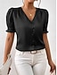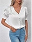 Mujer Camisa Blusa Botones Plano Elegante Clásico Moderno Manga Corta Escote en Pico Tops regulares Diario Festivos Noche Azul Piscina Negro Blanco Verde Claro Rosa Verano Primavera