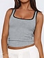 Mujer Tops tejidos de canalé Camiseta sin mangas Y2K Top ajustado Colores contrastantes Elegante Casual Sin Mangas Correas Escote Cuadrado Tops cortos Diario Noche Gris Verano Primavera