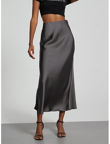 Mujer Falda Corte Bodycon Elegante Moda Midi Alta cintura Faldas Plano Microelástico Fiesta Calle Negro Vino Caqui Gris Oscuro Primavera Satén Poliéster