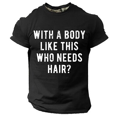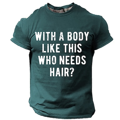 Camiseta divertida para hombres '¿Con un cuerpo como este quién necesita pelo?' Camiseta gráfica | Humor de gimnasio de manga corta para calvos