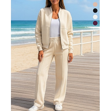Mujer Chándal de 2 piezas Sudadera con capucha Lounge Conjuntos de chándal Color sólido Trajes de Yoga Otoño Negro Blanco Rutina de ejercicio Al Aire Libre Viaje Alta cintura Ligero Moda Manga Larga