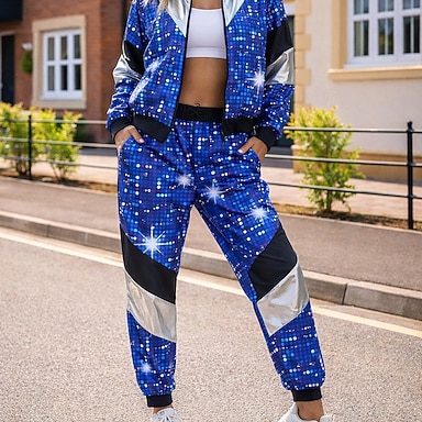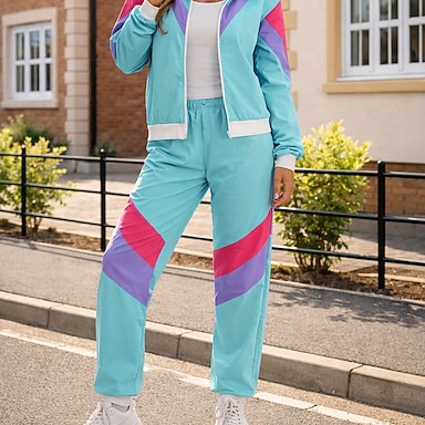 Mujer Sudadera con cremallera Ropa deportiva de los años 80 Chándal de 2 piezas Holgado con bolsillo Bloque de color Trajes de Yoga Otoño Verde Senderismo Vocación Al Aire Libre Ligero Manga Larga