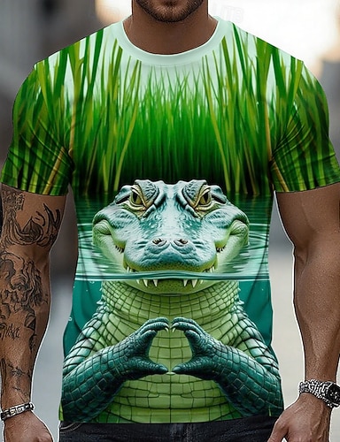 Hombre Cocodrilo Gracioso Camiseta Manga Corta Camiseta Impresión 3D Cuello Barco Camisa Exagerado Design Fiesta Calle Casual Verde 2# Verde Claro Verde Menta Verano Primavera Todas las Temporadas