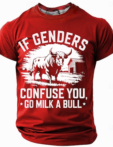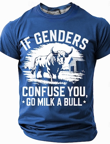 Camiseta gráfica humorística de manga larga para hombres con 'Si los géneros te confunden ve a ordeñar un toro' diseño de juego de palabras idiomático