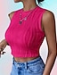 Mujer Camiseta sin mangas Con Texturas Camiseta superior Color sólido Elegante Moda Sin Mangas Cuello Barco Tops cortos Casual Noche Ropa de vacaciones Negro Blanco Rosa Rojo Verano Primavera