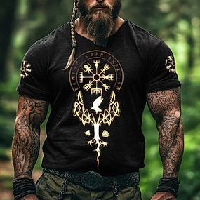 Miesten Kuvitettu Merellinen Kompassi T-paita T-paidat ahdistunut t-paita Lyhythihainen T-paita 3D-tulostus Tiukka pyöreä kaula-aukko Paita Vintage Muoti Suunnittelija ulko- Kausaliteetti Päivittäin