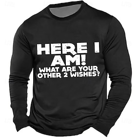 Miesten hauska graafinen T-paita - 'Tässä olen Mitkä ovat kaksi muuta toivettasi?' Lyhythihainen elämäntapapaita