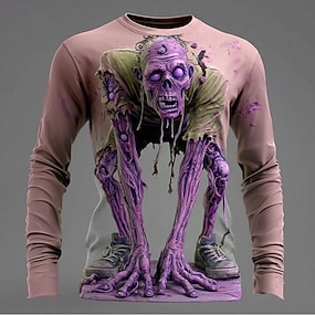 Miesten 3D Print Zombeja 3D T-paita Lyhythihainen T-paita 3D-tulostus Tiukka pyöreä kaula-aukko Paita Liioiteltu Suunnittelija Kauhu Juhla Katu Pyhäpäivä Keltainen Sininen Purppura Kesä Kevät Kaikki
