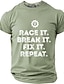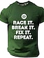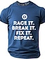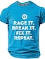 miesten kilpa-ajo, rikkoutuminen, korjaaminen, toistovaihteisto, jakoavain, kilpa-autoharrastaja, mekaanikko, hauska graafinen t-paita, lyhythihainen, pyöreä pääntie, rento autotalli-t-paita,