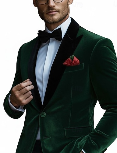 Miesten Velvet Blazerit Suljettava kaulus Muoti Juhla Klassinen Yhtenäinen Samettinen bleiseri Musta Purppura Apila Räätälöity istuvuus Yksiriviset kaksinappia