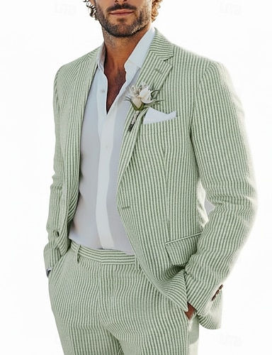 Miesten Pellava puvut Ranta häät Häät herne vihreä Valkoinen Kesä Puku V kaula-aukko Yhtenäinen Räätälöity istuvuus 2-osainen setti